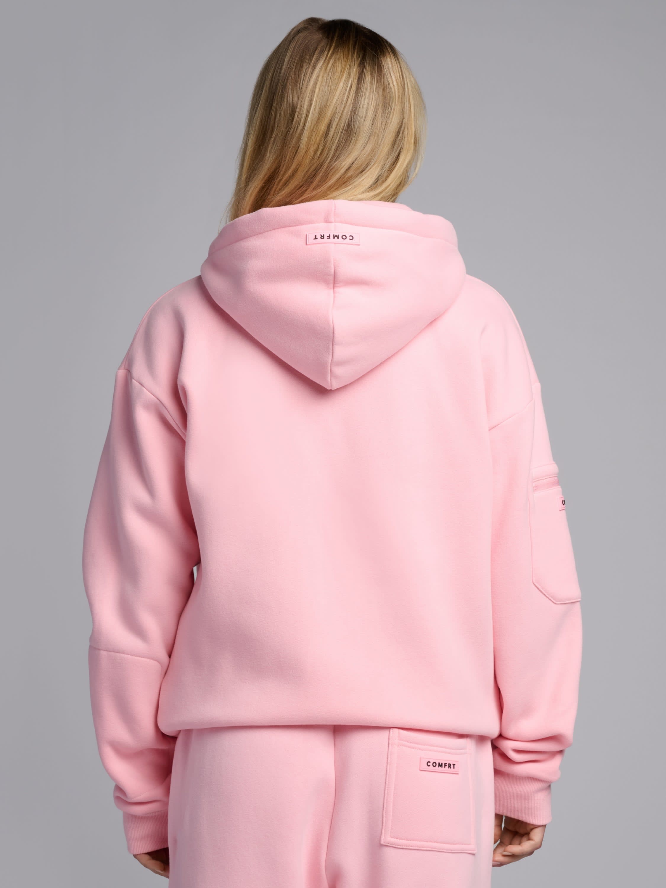 A built-in contoured eyemask lets you rest undisturbed, while zip sleeve pockets keep essentials like your AirPods close. Hidden compartments inside the kangaroo pocket discreetly store your passport and valuables. Finished with an oversized, double-lined hood, this piece redefines travel comfort in motion.