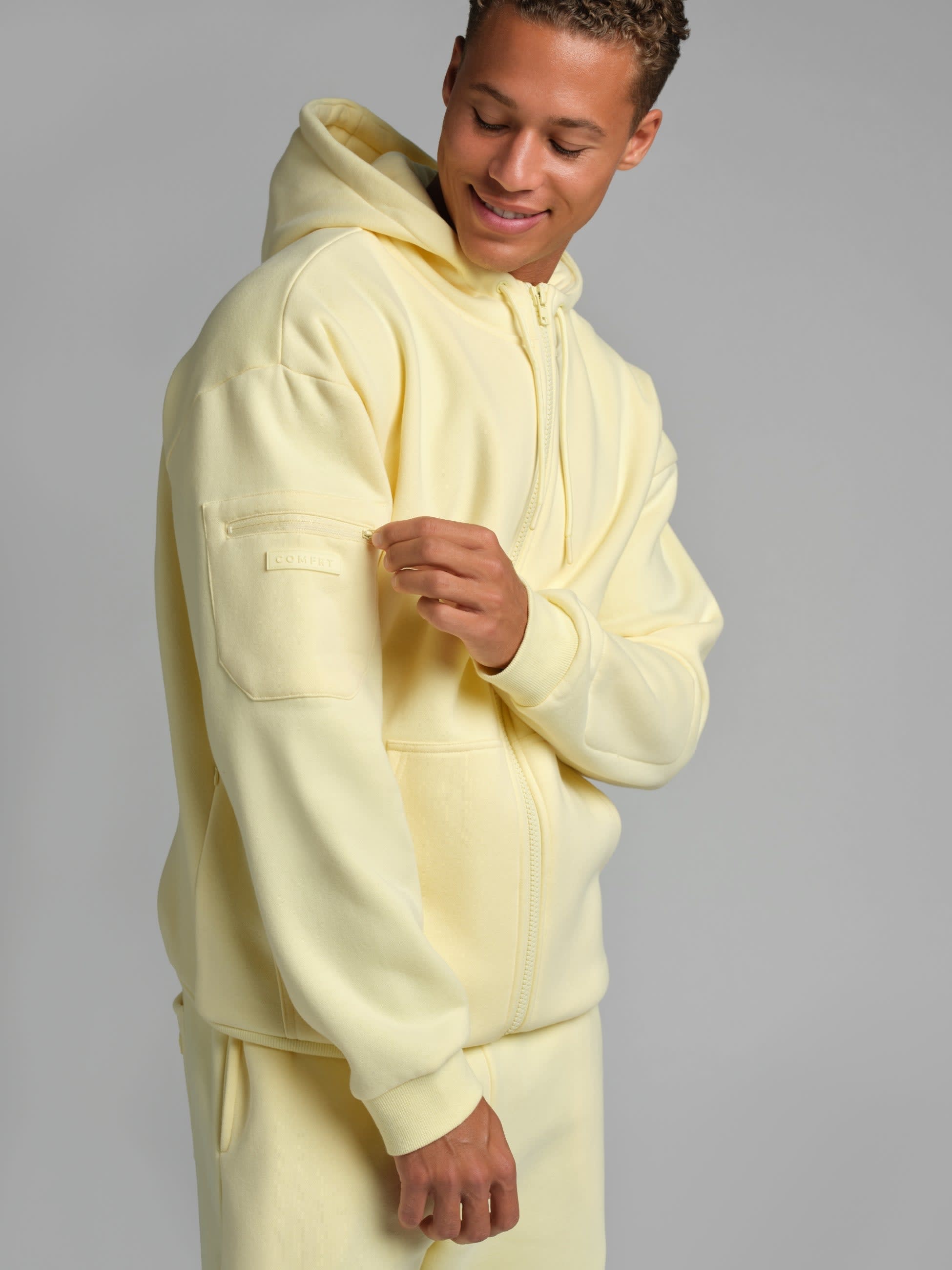 Wrap yourself in Comfrt and unplug with Airplane Mode. Crafted from our signature Super Soft Combed Cotton Blend Heavyweight Fleece, this hoodie delivers effortless comfort from takeoff to landing. The new full-zip construction offers versatility and ease—perfect for layering through every journey.