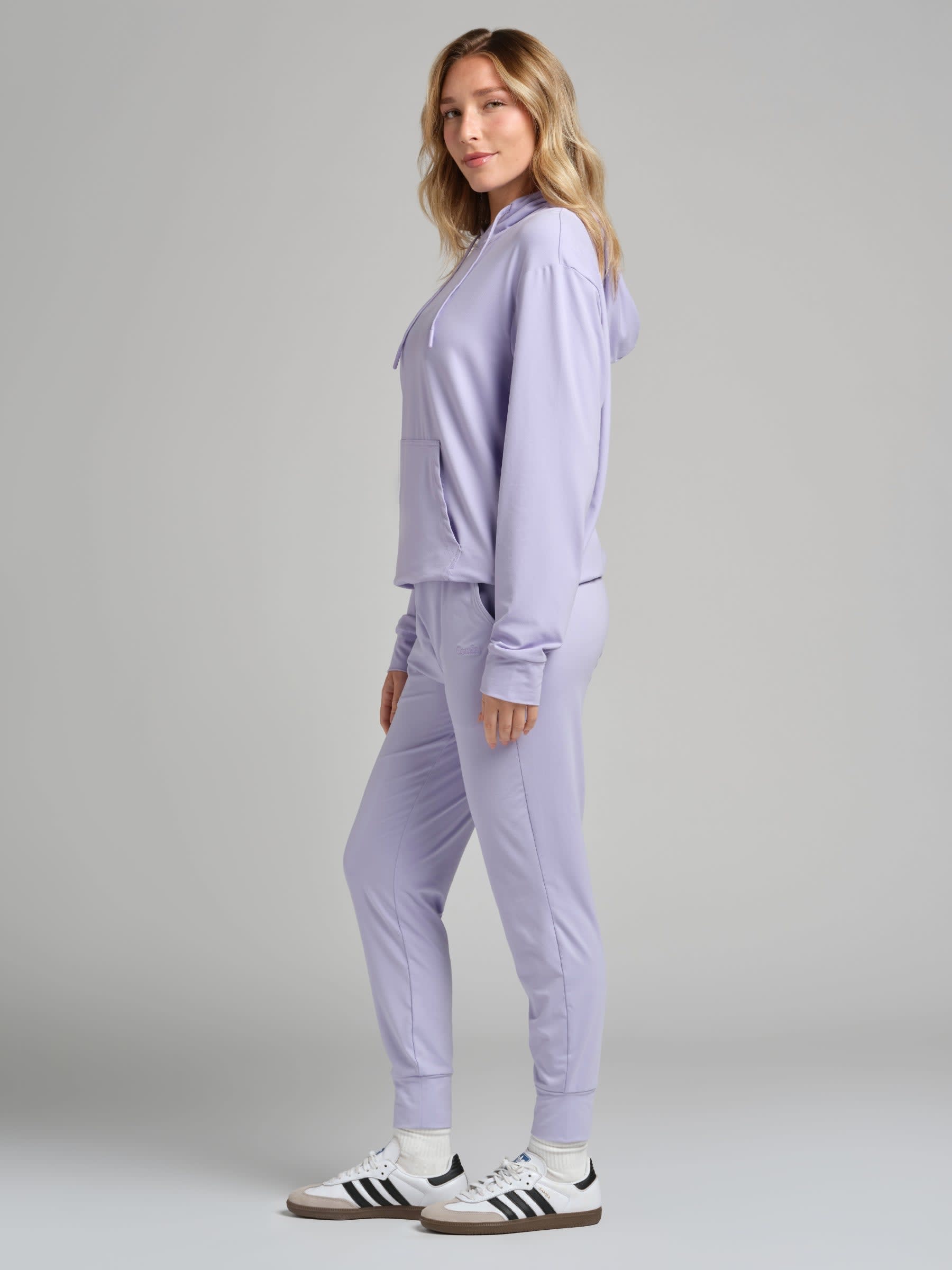 Move through your day in comfort and style. Made from our lightweight, brushed AllDayJersey™, these joggers are breathable, soft, and ready for anything—lounging, errands, or a light workout. Slim fit through the hip, thigh, and leg, narrowing to a classic jogger cuff at the ankle. An elastic waistband with adjustable drawcord and side pockets keep things comfortable and functional. For a looser feel, size up. Pairs perfectly with the AllDayJersey™ Hoodie for the ultimate all-day set.