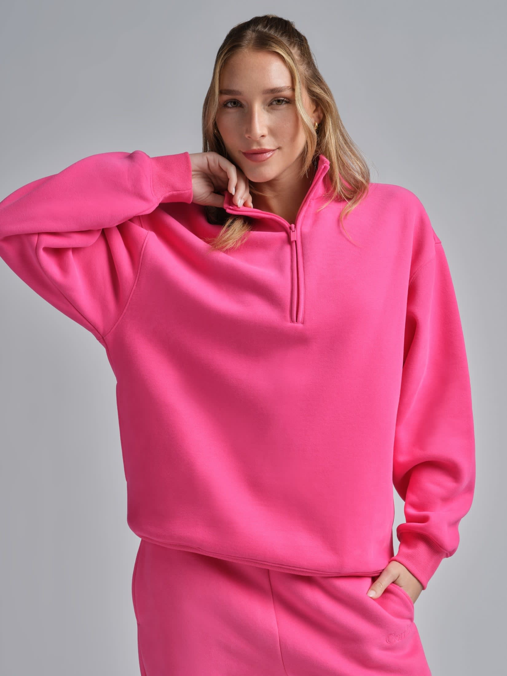 - Mock neck with half zipper front detail