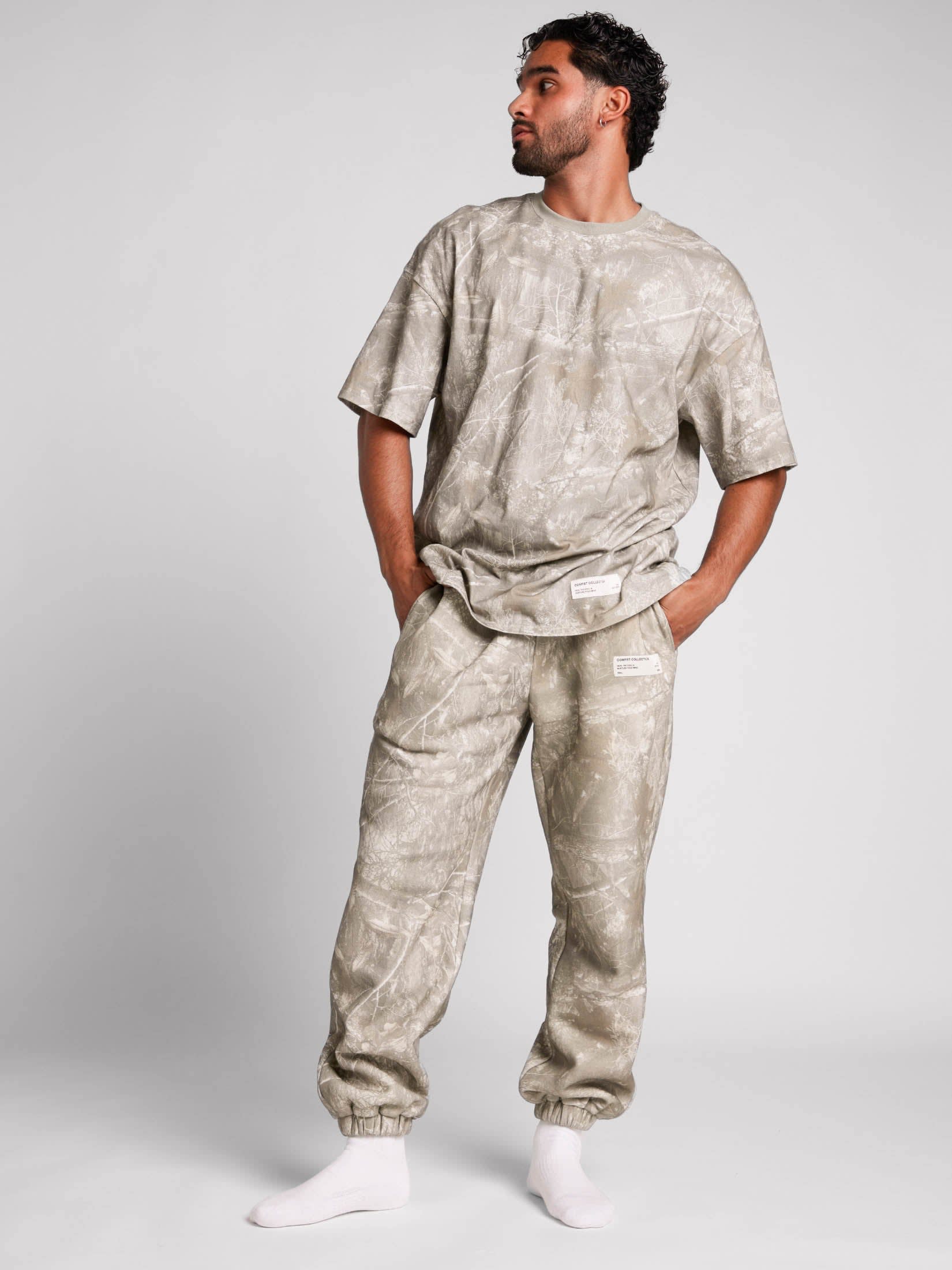 Blending comfort with the calming essence of the outdoors, our heavyweight oversized tee features a nature-inspired camo print designed to reflect your connection to the wild. Made from ultra-soft, breathable cotton Jersey, this tee is crafted to be the most comfortable piece in your closet. Its relaxed, oversized fit and cozy weight make it perfect for slow mornings, quiet walks, or unwinding at home. Each piece is enzyme-washed for cloud-like softness and long-lasting quality—no shrinkage, just pure Comfrt.