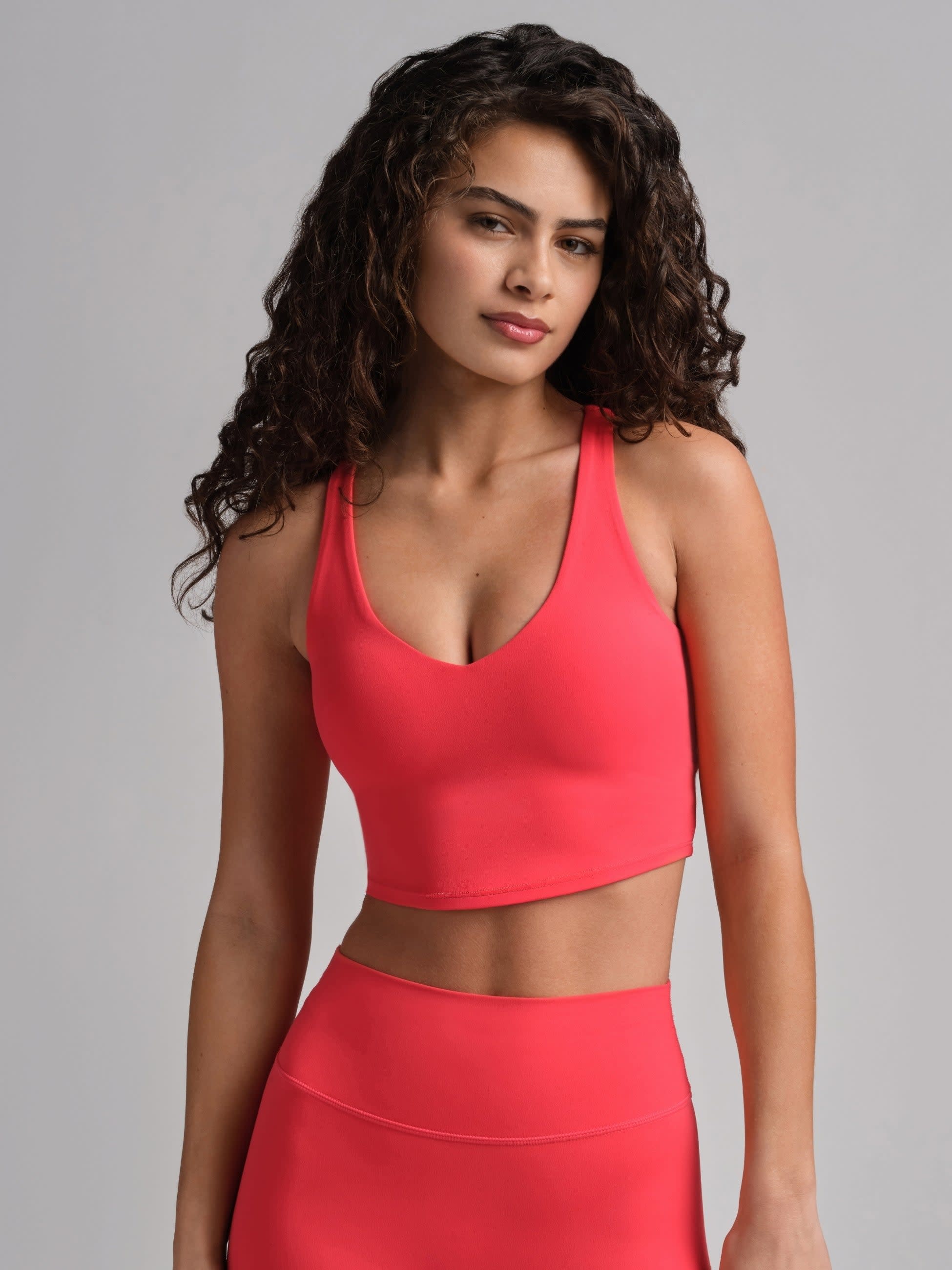 Our ComfrtCore V-Neck Crop Tank with built-in shelf bra is designed for effortless comfort. Made from barely-there, buttery-soft, sweat-wicking fabric, it shapes to your body for a smooth, second-skin feel. Featuring removable cups and a flattering V-neckline, it’s fully lined for comfort and ease. Designed to hit just above the waist, this versatile crop is perfect for light to medium intensity workouts, lounging, and studio-to-street wear.
