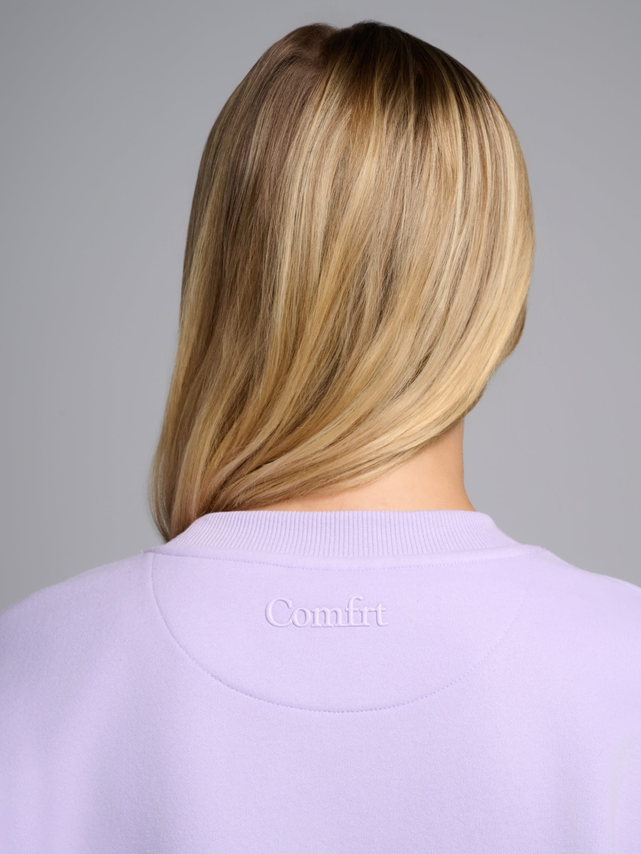 The Halo Crew features a cropped, relaxed fit that hits at the waist or slightly below and is true to size, offering a fresh, elevated take on casual comfort.