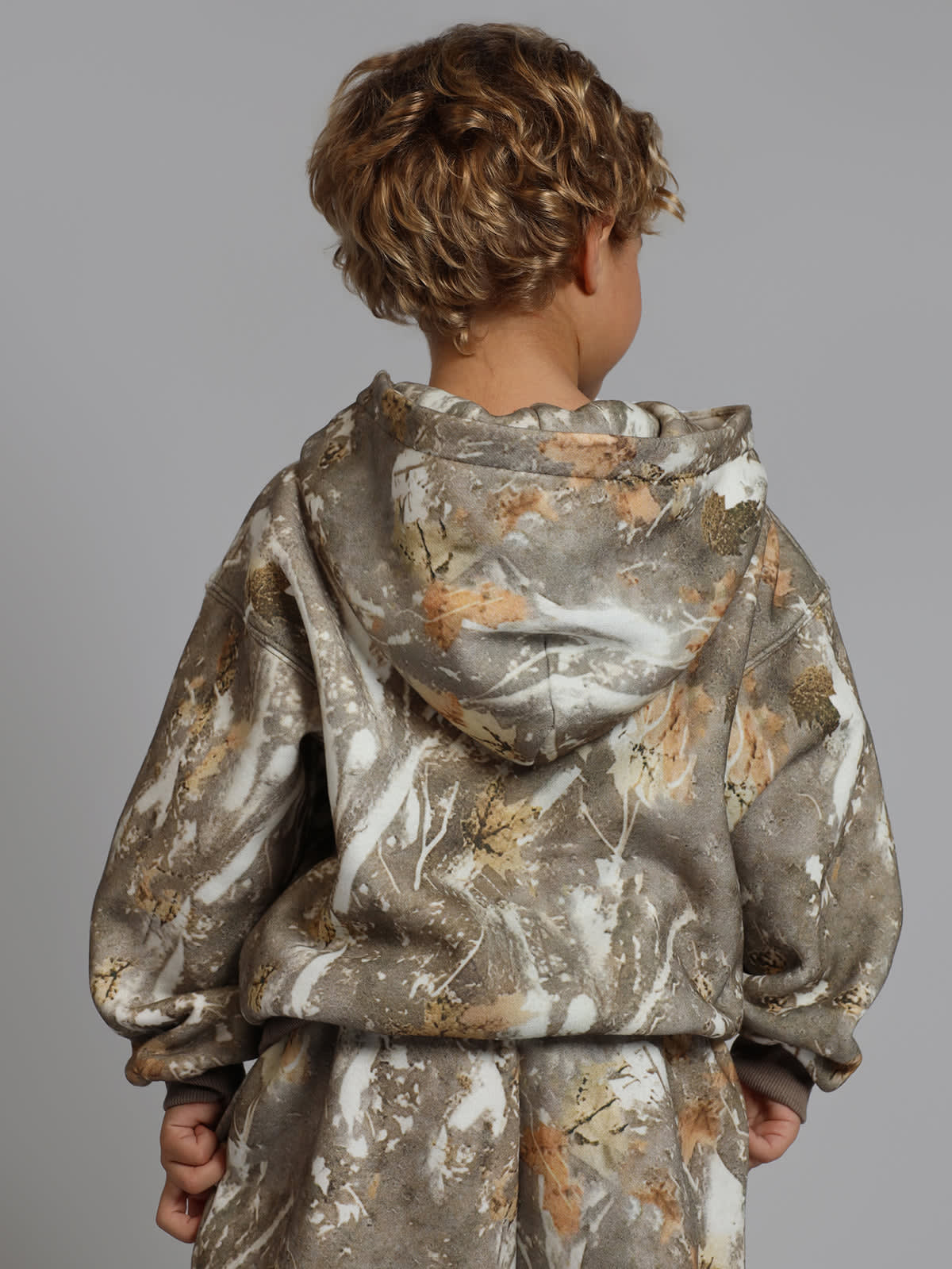 Our camo prints are inspired by scenes of nature—like a cozy adventure you can wear. Made from our Super Soft Combed Cotton Blend, these hoodies are all about quality comfort—featuring a roomy kangaroo pocket and an oversized, double-lined hood. Each hoodie gets an enzyme wash for that ultra-soft feel, like being wrapped in a cloud, but better. Each hoodie is slightly weighted and oversized, which parents say helps their kids feel calm and grounded. Pair with our Camo Kids Sweatpants for head-to-toe Comfrt.