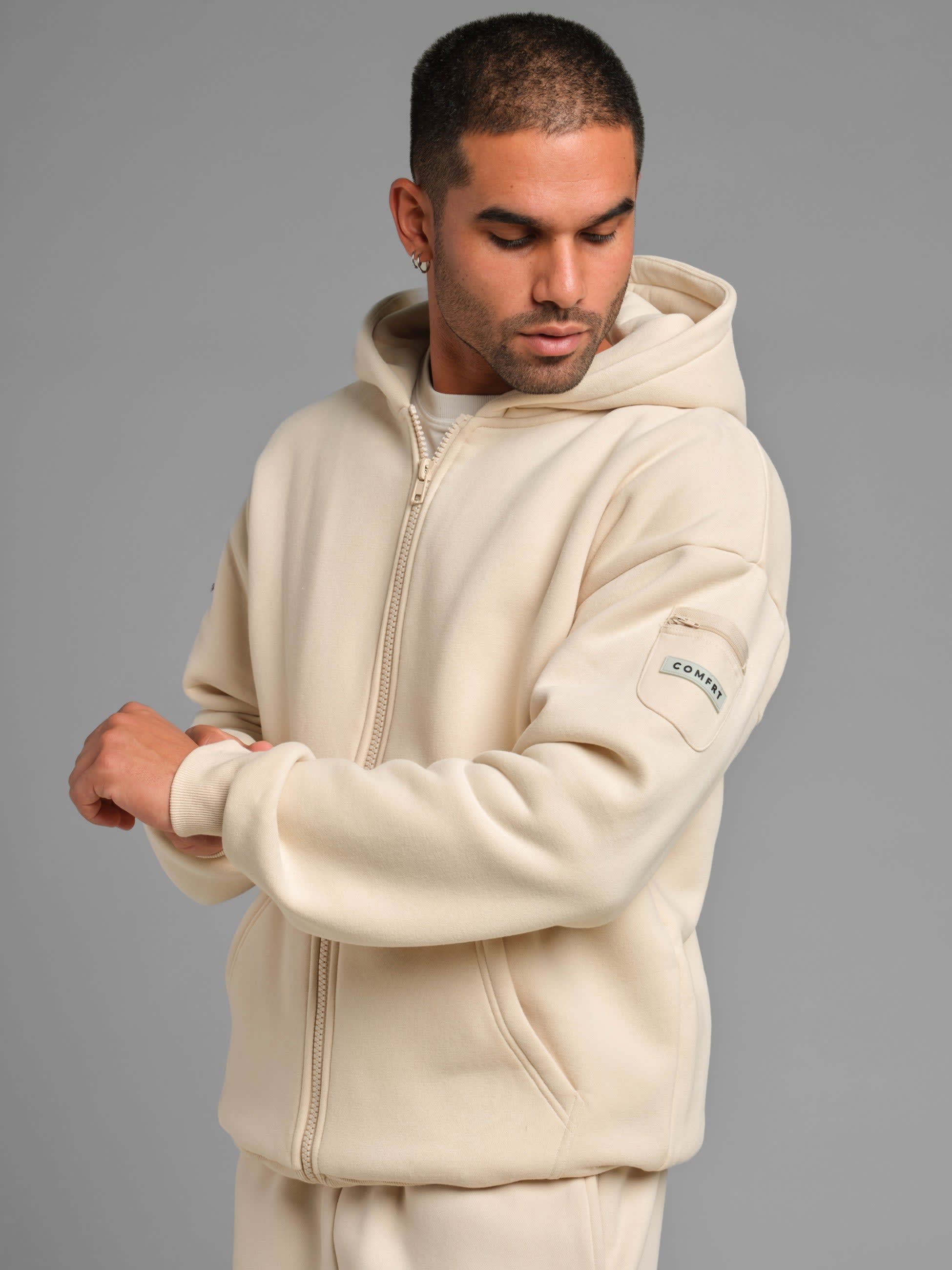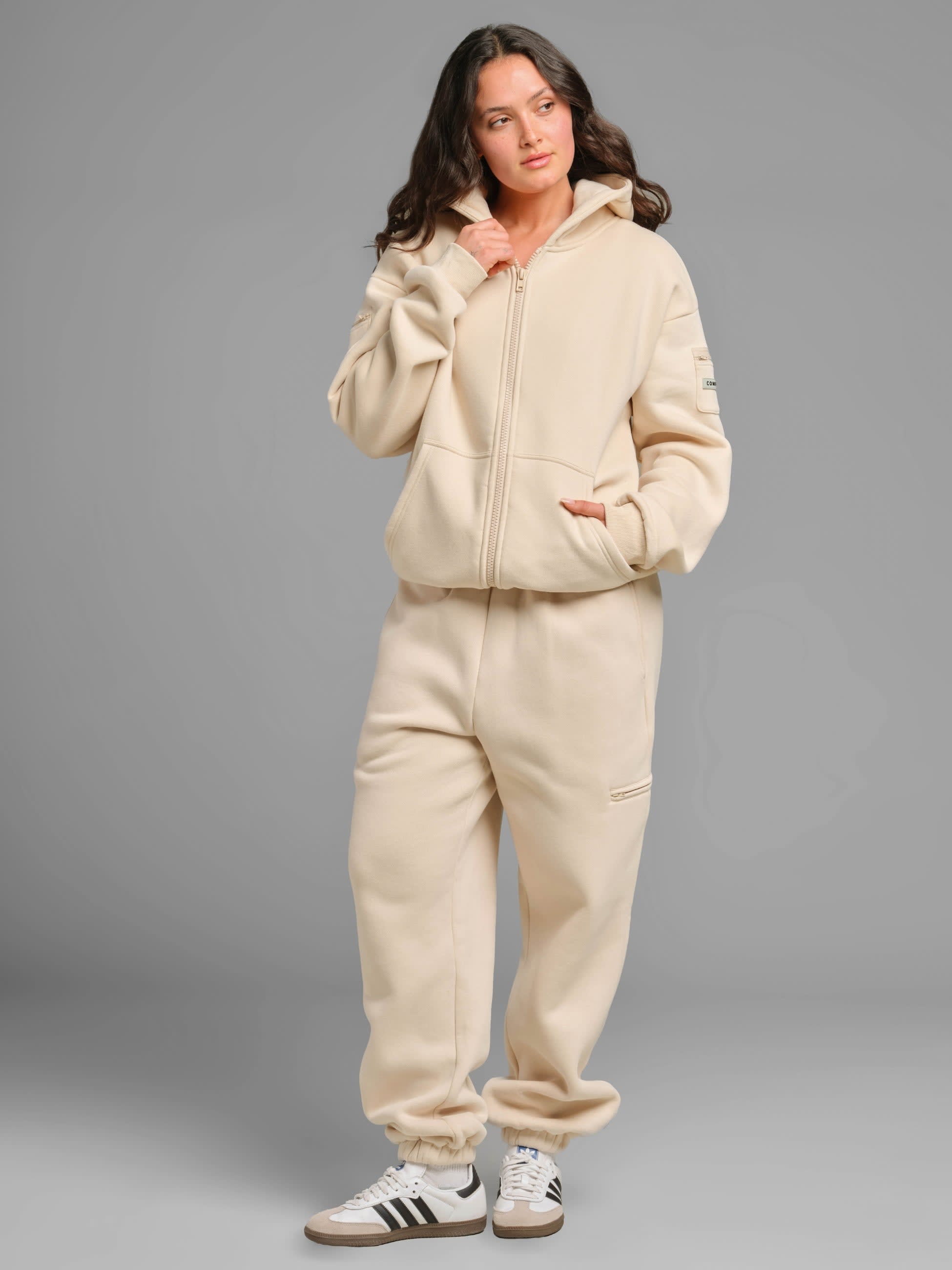 Designed for ultimate versatility, this classic zip-up combines the ease of a full-zip closure with the functionality of our best-selling Travel Essentials Hoodie. Think of it as the perfect evolution—everything you love, now with a zipper. Crafted for comfort and convenience, it features 5 secure zipper pockets to keep your essentials—passport, phone, earbuds—safe and accessible. The slightly weighted fabric provides a calming, grounded feel, while the oversized yet structured fit gives you the perfect balance of roominess and a refined silhouette.