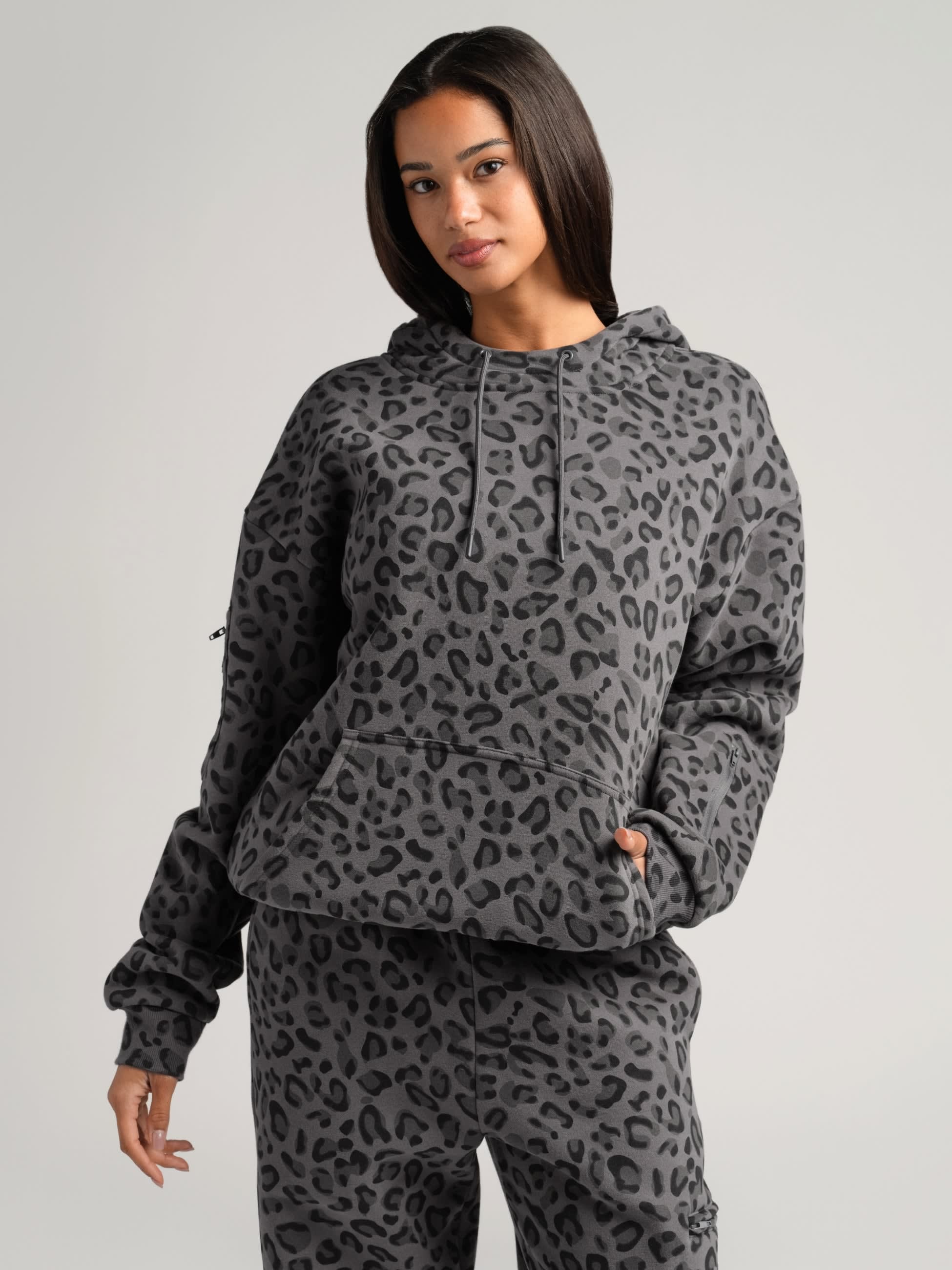 Zip sleeve pockets keep your AirPods within reach. Hidden compartments inside the kangaroo pocket lock down your passport, ID, and cash. The oversized double-lined hood wraps you in the kind of comfort that makes a middle seat feel first class.