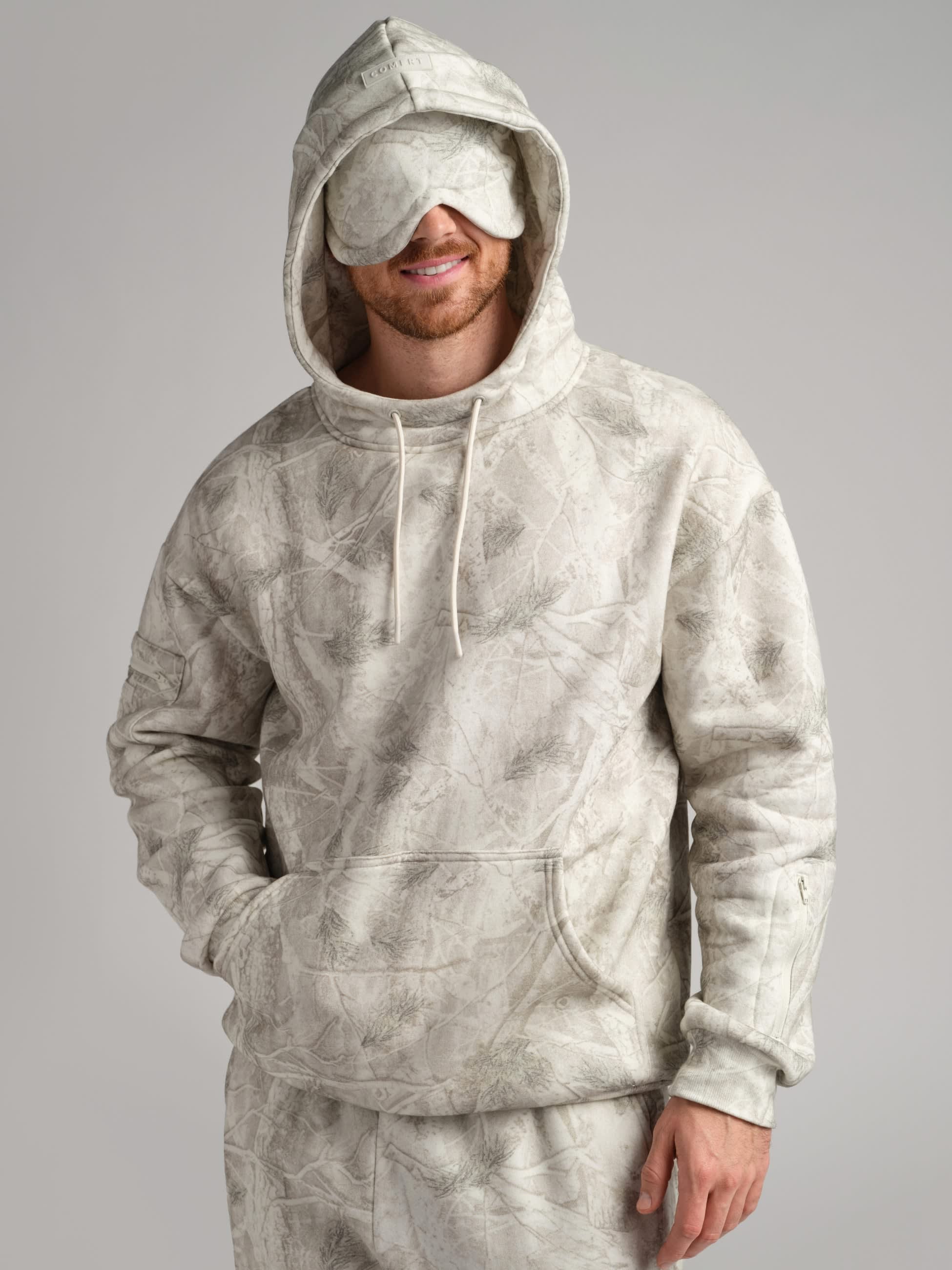 Built from our ultra-soft Combed Cotton Blend™ heavyweight fleece, this airplane hoodie is engineered for one thing: the best sleep of your travel life. The built-in contoured eye mask blocks light completely — because studies show blocking light supports melatonin production, deeper REM sleep, and better next-day focus. This isn't just a hoodie with an eye mask. It's your new carry-on essential.