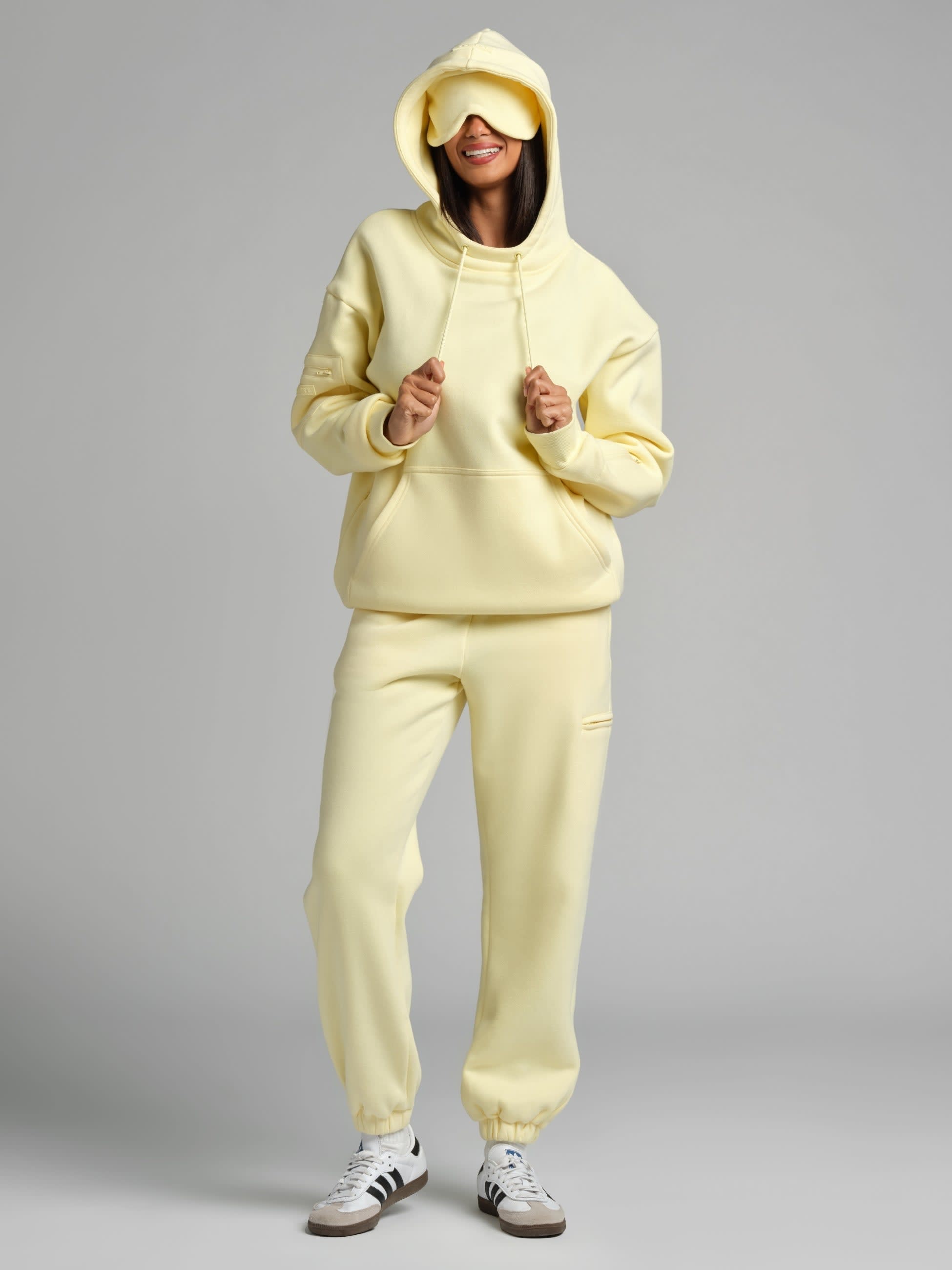 Built from our ultra-soft Combed Cotton Blend™ heavyweight fleece, this airplane hoodie is engineered for one thing: the best sleep of your travel life. The built-in contoured eye mask blocks light completely — because studies show blocking light supports melatonin production, deeper REM sleep, and better next-day focus. This isn't just a hoodie with an eye mask. It's your new carry-on essential.
